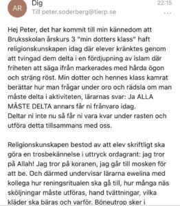 På onsdagen uppmärksammades det att en skola i Uppsala län tvingar nioåriga barn att bekänna sig till islam och Allah i samband med religionsundervisningen. Bland annat har eleverna fått skriva, ”jag tillhör islam”.