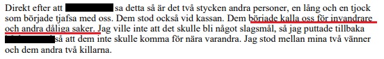 När polisen förhör Abdalraouf försvarar han sig med att det är svenskarna som helt plötsligt har börjat förolämpa hans gäng i kassan genom att kalla dem ”invandrare och andra dåliga saker”.