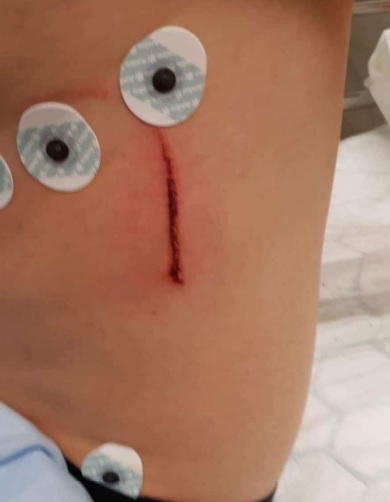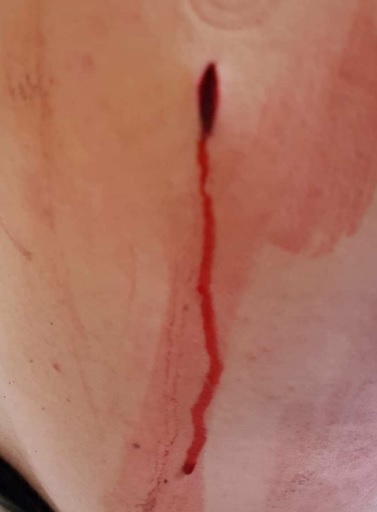 Ricky och hans vän, som syns falla ihop på stillbilderna, åsamkades flera stickskador.