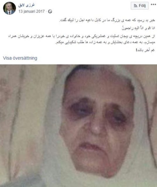 Genom ett inlägg på Facebook har släkten Ahmadzais släkting tillkännagivit moderns bortgång i januari år 2017. Det finns även bilder som visar hur familjen i Göteborg samlas och sörjer. Men bara månaden därpå registreras modern plötsligt som utvandrad till Afghanistan i Skatteverkets register.
