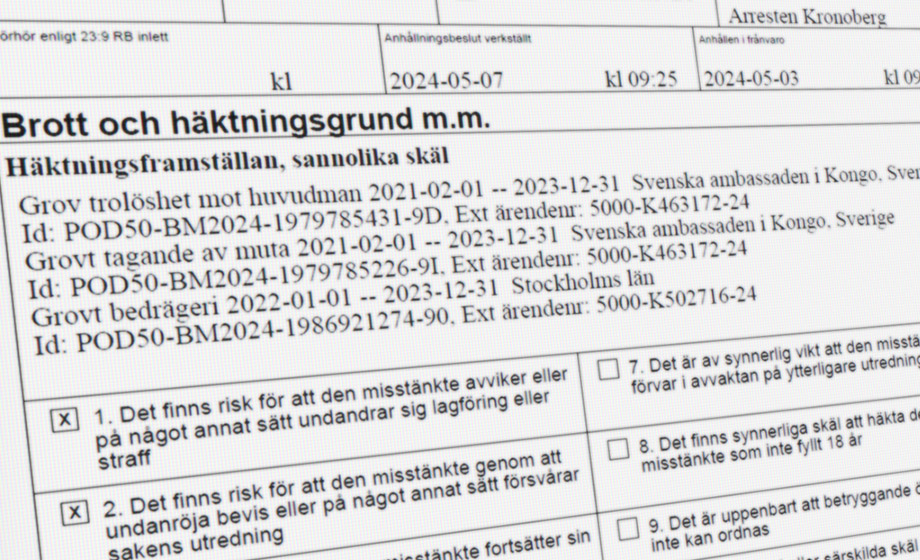 Brotten, som ska ha begåtts från 1 januari 2021 fram till sista december förra året, gäller emellertid inte den ambassad som Kaboru arbetar på nu, utan den tidigare arbetsgivaren: Svenska ambassaden i Kongo. Det grova bedrägeriet har enligt framställan begåtts i Sverige, men de övriga brotten på ambassaden i Kongo.