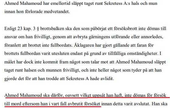 Ahmed stod åtalad för mordförsök på flickan men rubriceringen ändrades till synnerligen grov misshandel eftersom han släppte taget om flickans hals innan hon förlorade medvetandet.
