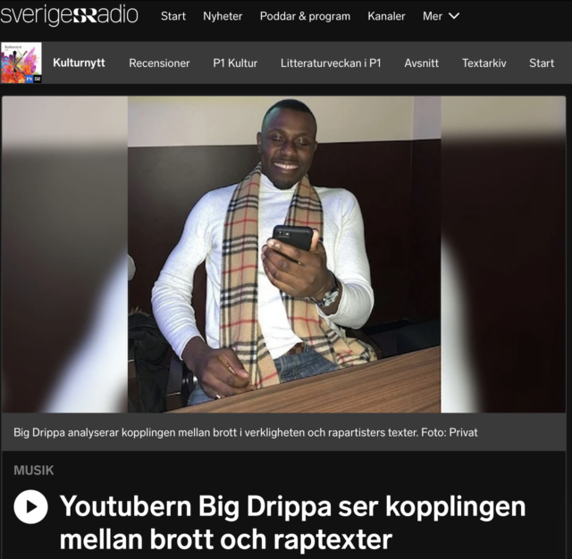 Sedan Samnytts artiklar publicerades om YouTube-profilen 2019-2020 har Sveriges Radio lyft fram honom på sin plattform. I en artikel lyfts mannen fram som en god kraft i samhället som ”ser kopplingen mellan brott och raptexter”.