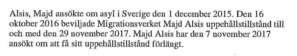 Av Migrationsverkets yttranden till Malmö tingsrätt framgår att en av gärningsmännen, Abed Salameh, har ett permanent uppehållstillstånd i Sverige och ”absolut verkställighetshinder mot Syrien”. Den andra gärningsmannen, Majd Alsis, fick ett tidsbegränsat tillstånd enligt den tillfälliga lagen. Den 7 november 2017 – alltså under den tid han befann sig i häktet – ansökte han om en förlängning av uppehållstillståndet. Att döma av att Migrationsverket bedömer att det råder generella verkställighetshinder även i hans fall utifrån hur situationen i Syrien ser ut idag kommer ansökan att bifallas.
