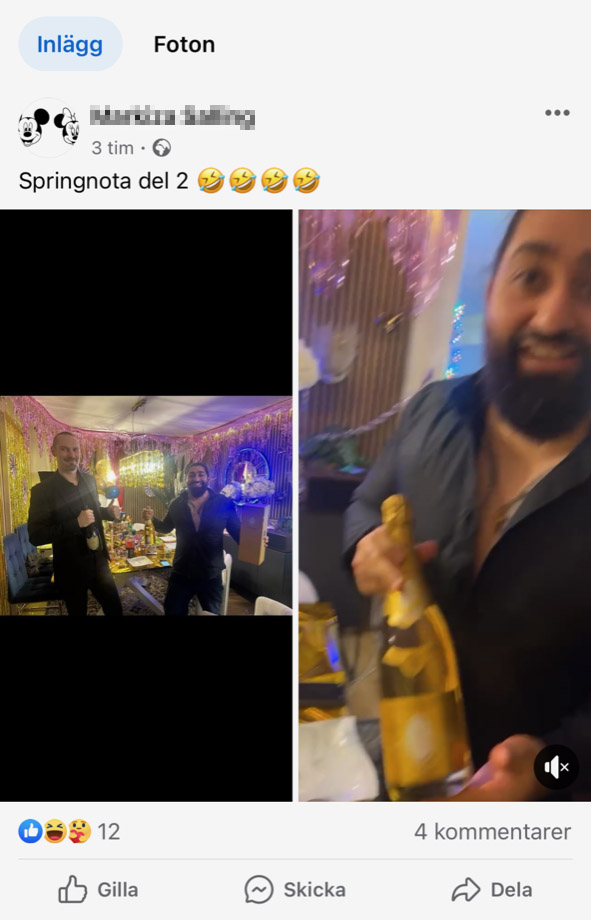 ”Springnota del 2”, skriver Lacky Daniel hånfullt följt av fyra smileys. Videon tycks visa hur romerna festar igen, fast denna gång sannolikt hemma hos någon.
