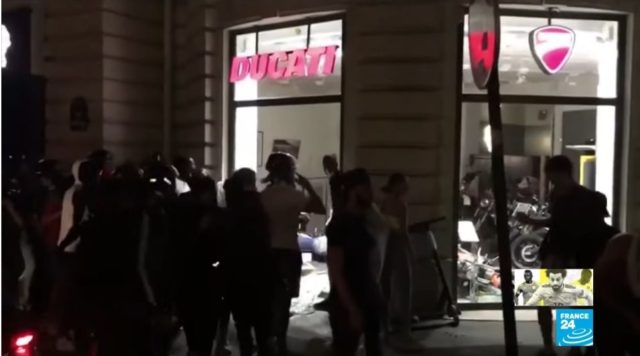 PARIS – Qualification de l’#Algerie : Le magasin #Ducati a été pillé. Des dégâts dans le quartier des #ChampsElysees #CAN2019 #CIVALG #ALGCIV pic.twitter.com/qRS9QyYCMI — Clément Lanot (@ClementLanot) July 11, 2019