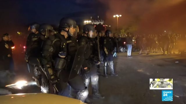 Den franska polisen försökte iklädd kravallutrustning stävja de aggressiva folksamlingarna med hjälp av tårgas. Enligt uppgifter ska omkring 70 personer ha gripits.