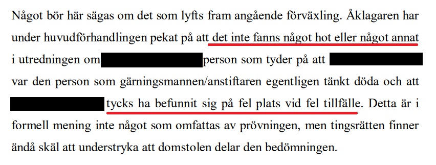 Det har inte funnits någon känd hotbild på 19-åringen och inget i utredningen pekar på att offret var gärningsmannens måltavla. ”XX tycks ha befunnit sig på fel plats vid fel tillfälle”, står att läsa i rättshandlingarna.