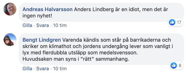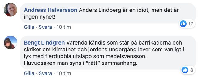 Så här såg Lindbergs statusuppdatering ut där han själv påstod att köttgrillning ”hettar upp planeten”