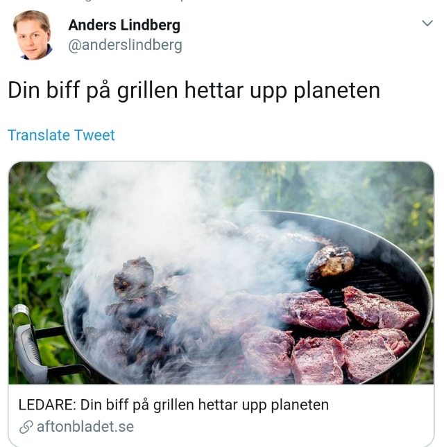 Anders Lindberg, ledarskribent på vänstertidningen Aftonbladet, delade igår en artikel från hans tidning som propagerar mot köttkonsumtion med rubriken ”Din biff på grillen hettar upp planeten”. Men privat stoltserar han med bilder på egna grillfester, något som Mediegranskarna var först med att uppmärksamma.