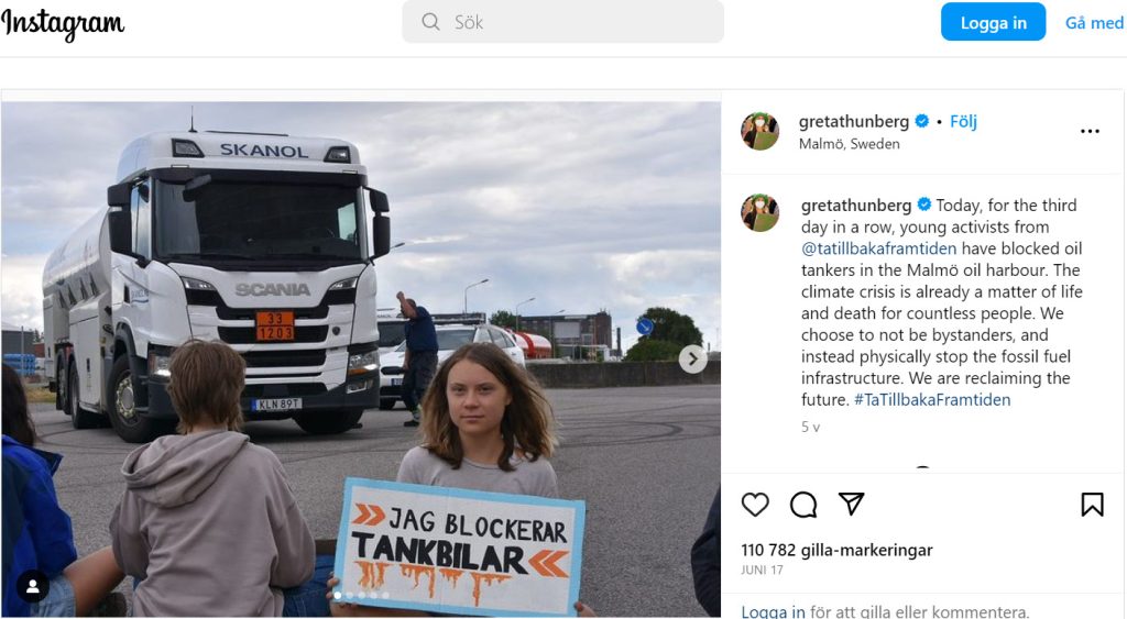 Bakgrunden är att Greta tillsammans med andra aktivister, eller extremister, förra månaden blockerade Oljehamnen i Malmö. Det gjordes flera dagar i rad. Hon lade till och med upp bilder från aktionen i sina sociala medier. När polisen uppmanade aktivisterna att flytta på sig, så vägrade de.
