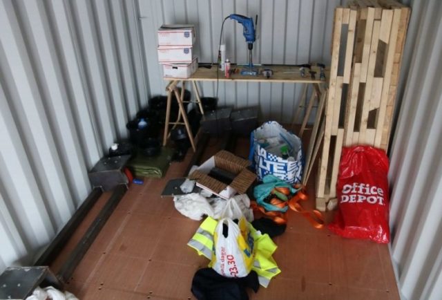 När tjuvarna hade tagit sin in i containern hittade de ett automatvapen, kartonger med byggsatser till vapen, vattentäta förpackningar för ammunition, polisuniform, peruk, glasögon, keps och brytverktyg. Tjuvarna tog kontakt med polisen, angav sig för inbrottet och berättade om fynden.