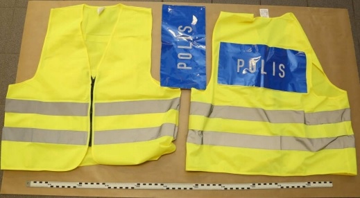 Två varselvästar med klistermärket ”Polis”.