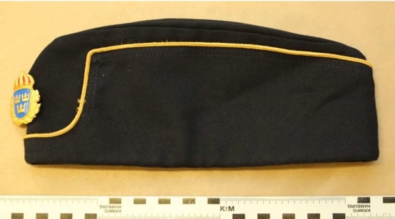 En äkta polismössa märkt med namnet ”Lars P”.