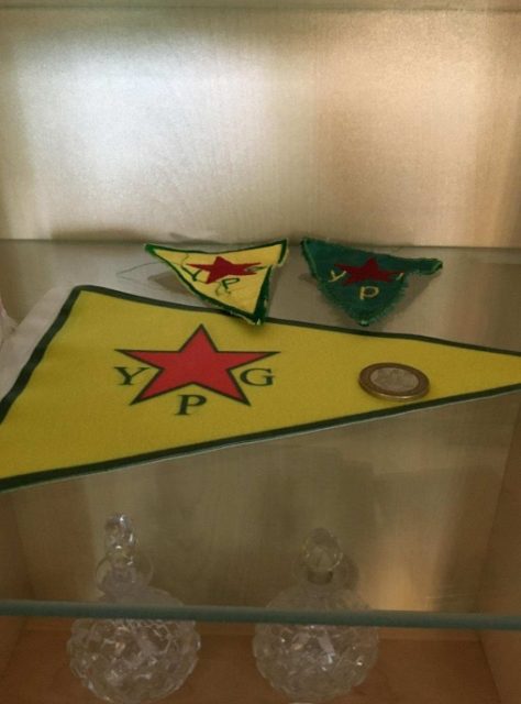 Vid husrannsakan finner polisen flaggvimplar samt uniformsmärken från kurdiska YPG, även känd som den väpnade grenen av Demokratiska unionspartiet i Rojava. En nätgranskning som polisen genomfört visar hur 32-åringen tillsammans med en annan representant för Svenska Rojava-grupperna besöker representanter för Kurdistans regionala regering (KRG) i Sverige.