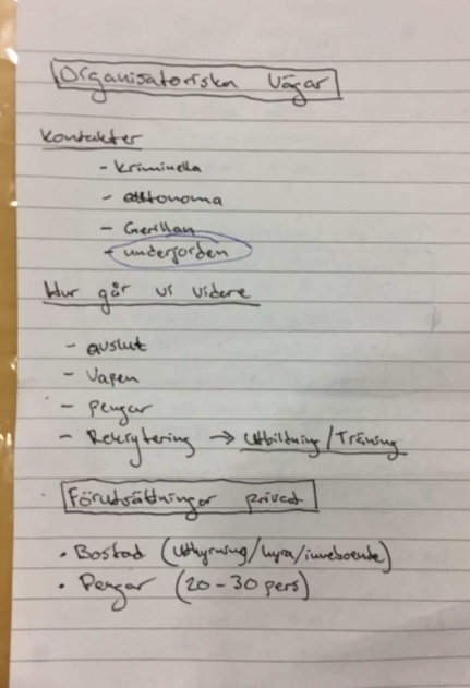I polisutredningen har man även påträffat någon form av planering kring 32-åringens olika vägval härnäst. Ett alternativ är ”rättegång” och ett annat är ”starta kriget”. Det finns även idéer om att ”vänta 10 år” och helst agera på en annan plats, exempelvis Grekland eller i områden tillhörande kurder.