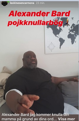 Carmona har publicerat flera bilder där han kallar Bard för en ”pojkknullarbög” och att han kommer knulla hans mor.