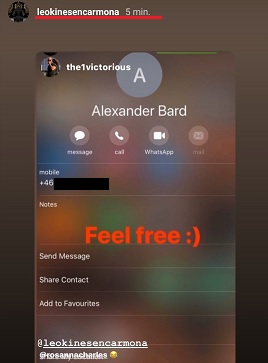 Carmona har även publicerat vad som uppges vara Bards telefonnummer.