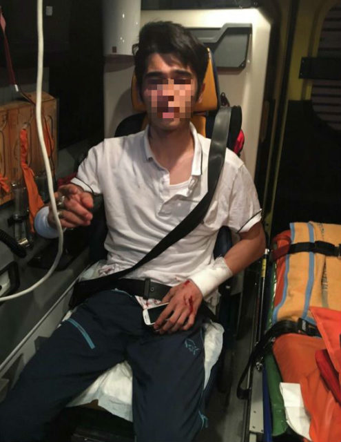 Den afghanske mannen i ambulans efter bråket. Foto: Polisen