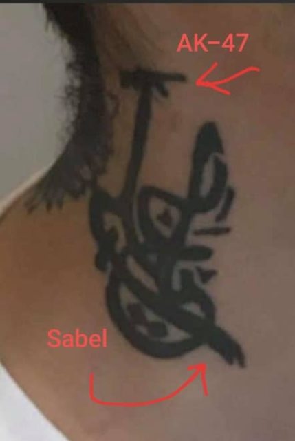 Expert: ”Har en relation till grupperna eller värnar deras ideologi högt” Tatueringen visar även en automatkarbin av typen AK-47. Expressen har talat med Philip Smyth vid The Washington Institute For Near East Policy som kopplar tatueringen till flera terroristorganisationer, däribland Hizbollah som betyder ’Guds parti’.