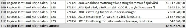 När det gäller Jämtland Härjedalen har regionen fått flera utbetalningar år 2016 på sammanlagt 83,5 miljoner kronor.