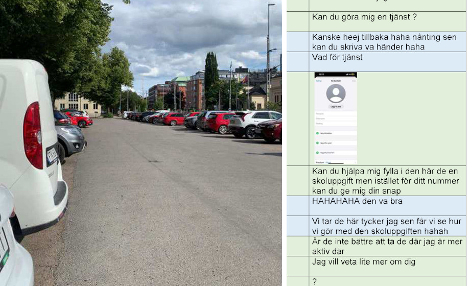 Medan de äter skickar tjejen textmeddelanden till någon. Hon skriver till sin syster, påstår hon. Efteråt går de förbi en kiosk, och kommer därefter överens om att åka till Gränby centrum tillsammans i hennes bil. De promenerar tillbaka till parkeringsplatsen.