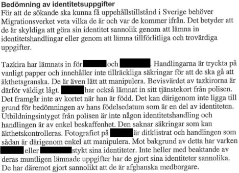 Utdrag ur Migrationsverkets utredning. I vanlig ordning har de asylsökande svårt att identifiera sig.