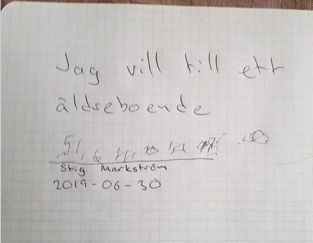 Kommunen: ”Vi analyserar ärendet” Stig har vädjat till Luleå kommun med en handskriven lapp för att få flytta till ett äldreboende. Hans dotter och son har även hjälpt till att dokumentera och spela in en video i vilken han vädjar om att få flytta men ingenting händer.