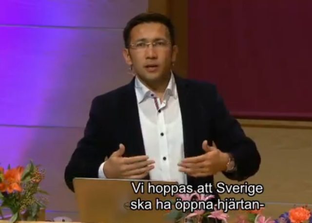 ”Öppna era hjärtan” I sitt anförande vädjade Mahmoudi till svenska folket att öppna sina hjärtan för att ännu fler afghaner ska få följa i hans fotspår till Sverige.