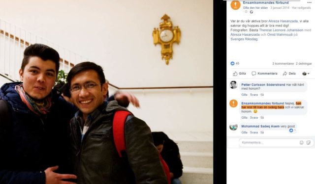 Den 13 september 2011 erhöll den då enligt egen uppgift 16-årige migranten Omid Mahmoudi från Afghanistan permanent uppehållstillstånd i Sverige. Sedan dess har han grundat Ensamkommandes förbund som arbetar med att hjälpa ’ensamkommande barn’ som uppehåller sig i landet.
