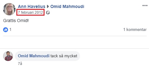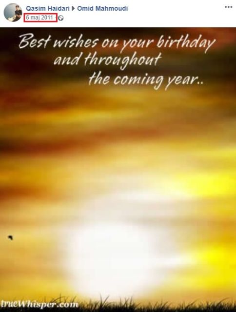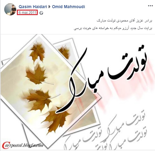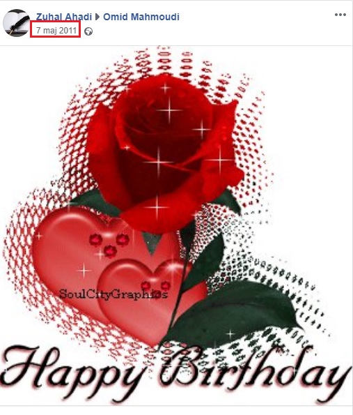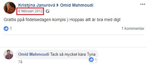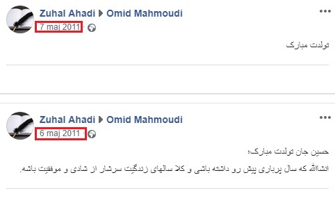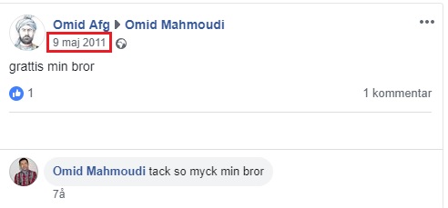 Under granskningen påträffar vi olika födelsedagar. År 2011, det vill säga samma år som Mahmoudi invandrade till Sverige men innan han hade erhållit ett permanent uppehållstillstånd, skickar flera personer i hans vänkrets på Facebook födelsedagsgratulationer mellan 6-9 maj. Det finns samtidigt inga gratulationer i anslutning till det födelsedatum Mahmoudi använder i sin folkbokföring.