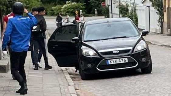 Några av gärningsmännen flyr i en bil efter misshandeln. Foto: Vittne