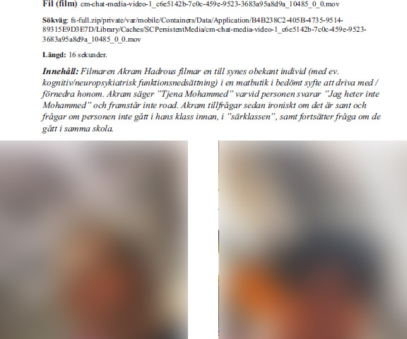 Polisen har i sin förundersökning säkrat en film där Hassan hånar en man med västerländskt utseende som utredarna tror är en tidigare elev i en särskoleklass.