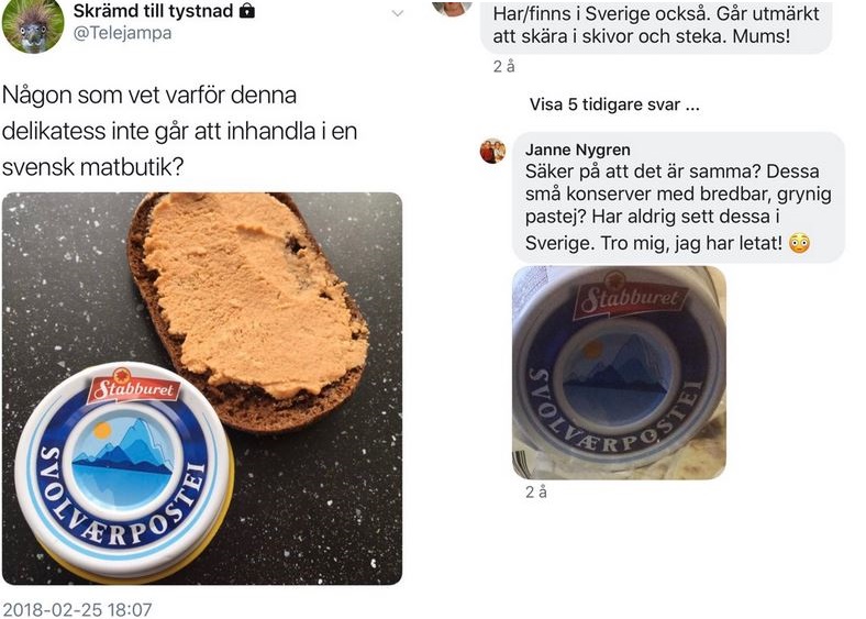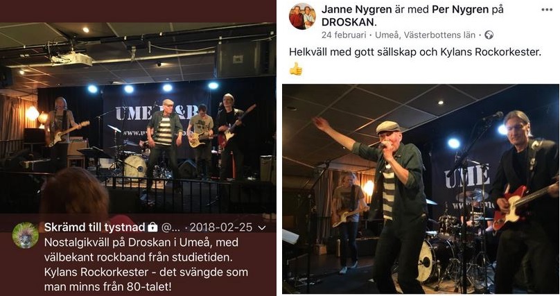 I flera av de fall när Jan Nygren lade upp riktiga bilder på kontot Telejampa finns det klara kopplingar till bilder på hans personliga Facebook-konto. Här har bordsduken ett liknande mönster som samtidigt är långt ifrån vanligt. En skärmdump från Telejampa till vänster och en bild från Jan Nygrens Facebook-profil till höger: