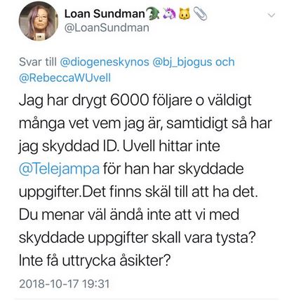 Det var nämligen Sundman som var först med att föra fram versionen om att den påhittade personen ”Johan Landström” bakom kontot Telejampa har skyddad identitet och därför inte kan hittas i offentliga register: