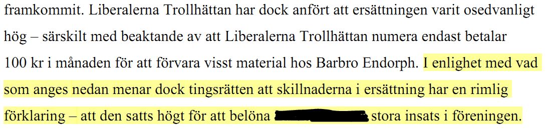 Det står dock i domen att tingsrätten ser din partikamrats förklaring till ersättningen som rimlig och håller med den?