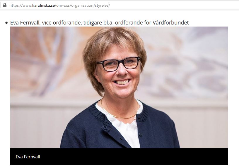 Den person som har det övergripande ansvaret över verksamheten är styrelseordföranden för bolaget Inera AB – som ägs och finansieras av Sveriges kommuner – Eva Fernvall. Hon blev ordförande i juni 2019 efter en lång karriär som bland annan ordförande för Vårdförbundet. Uppdraget gav henne ett arvode på 120 tusen kronor per år plus över 2 tusen kronor för varje möte. Detta ska läggas till hennes andra uppdrag – som viceordförande för styrelsen för Karolinska Universitetssjukhuset där hon får drygt 250 tusen per år: