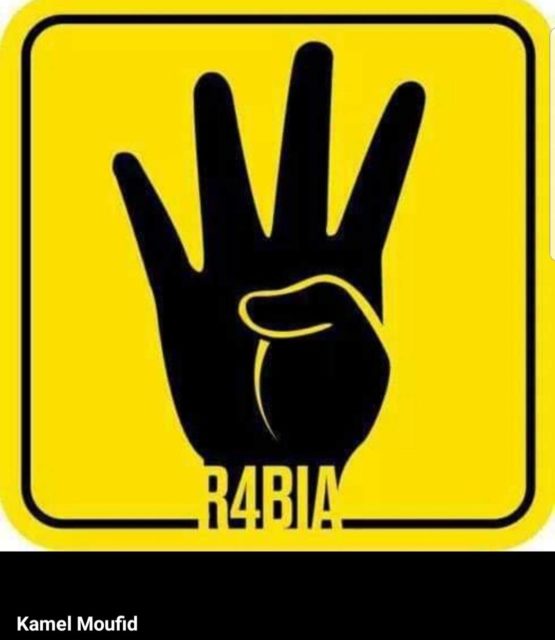 Imamens digitala spår visar extrema religiösa inslag. Här nedanför syns Rabia-tecknet som främst används av anhängare till den islamistiska organisationen Muslimska brödraskapet. Egypten har klassat tecknet som en indirekt uppmaning till terrorism.