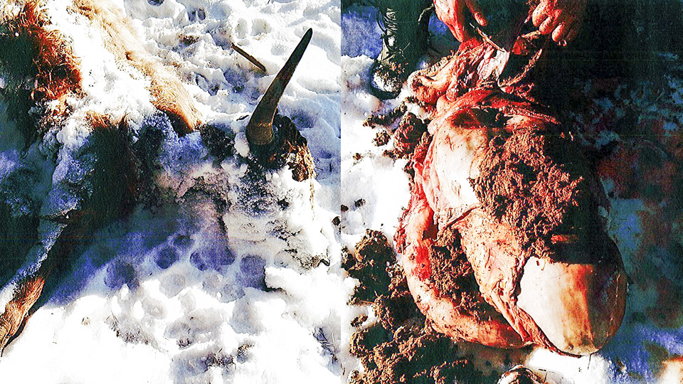 När Lundström och Heldemar kommer fram till gården möts de av en makaber syn. Tre av de sex jakar som påträffas i hägnet är döda. De tre som fortfarande är i liv, en tjur, en ko och en kalv, har inte fått vare sig mat eller vatten på flera dagar. Djuren är mycket hungriga.