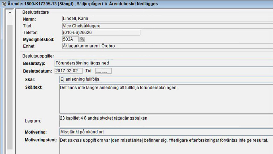 – Det är det enda ärende där jag skrivit en åtalsanmälan när det gäller den här typen av djur och i den omfattningen.