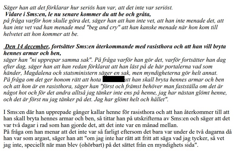”Alltså i det här landet är det fritt att prata och tala och om mitt sätt att prata och att uttrycka mig uppfattas som hot, alltså det är ändå ett demokratiskt land”.