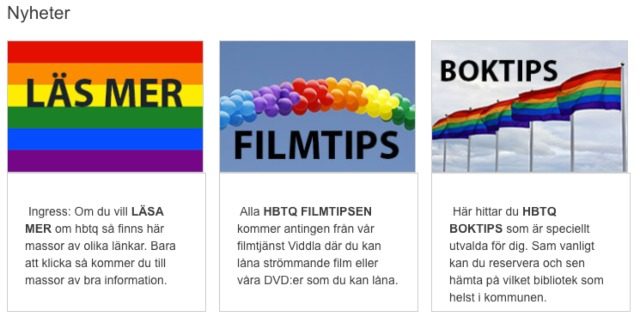 Man har nu satt dit RFSL:s certifieringssymbol på bibliotekets fasad. På deras hemsida handlar samtliga nyheter om hbtq.
