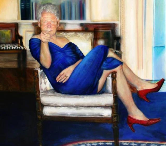 I Epsteins hem, på Manhattan, hängde en oljemålning föreställande Bill Clinton, klädd i blå klänning och röda högklackade skor. Målningen gjordes av australiensiska Petrina Ryan-Kleid när hon studerade konst på New York Academy of Art.
