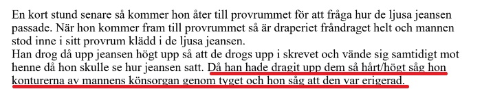 En av kvinnorna vittnar även att polismannen hade stånd i provhytten.