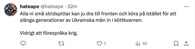 Muharrem Demirok har fått en lång rad kritiska inlägg mot sig under tisdagen. Flera anser att Demirok själv ska resa ned och delta vid fronten i Ukraina om han vill att kriget ska fortsätta.