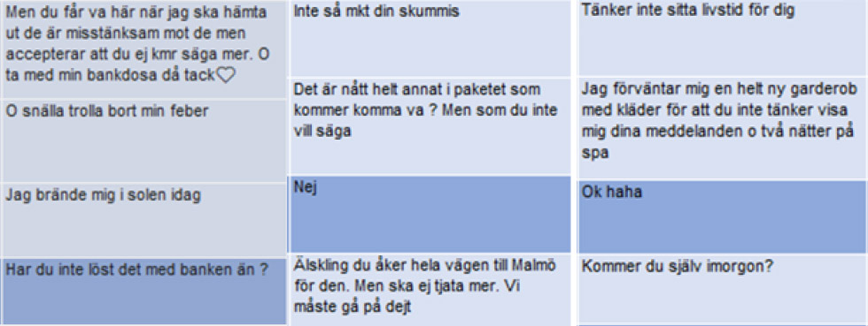 Bland annat skriver Cecilia att hon ”är misstänksam mot de”, att hon tror ”det är nått helt annat i paketet” och att hon inte ”tänker sitta livstid för dig”.