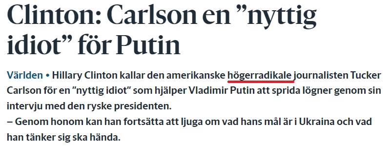 I en artikel från nyhetsbyrån TT – som bland annat publicerats av Göteborgs-Posten – kletas ordet ”högerradikal” på den konservative journalisten som påstås hjälpa Putin att sprida lögner.