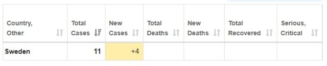 I Sverige sker däremot inget aktivt arbete från myndigheternas sida för att upptäcka smittade. Folkhälsomyndighetens statsepidemiolog Anders Tegnell, som tidigare kritiserats för att spela ned allvaret i situationen, kommenterar nu de nya fallen i statstelevisionen med att ”det ser lugnt ut”.