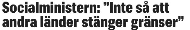 I en intervju med Expressen berättar socialminister Lena Hallengren (S) att hon är trygg med att regeringens arbete kring coronaviruset. Vidare ser hon inget behov av att vidta några drastiska åtgärder som att stänga gränser eller genomföra undersökningar på flygplatser. Detta eftersom hon menar att andra länder inte har gjort det.