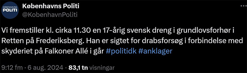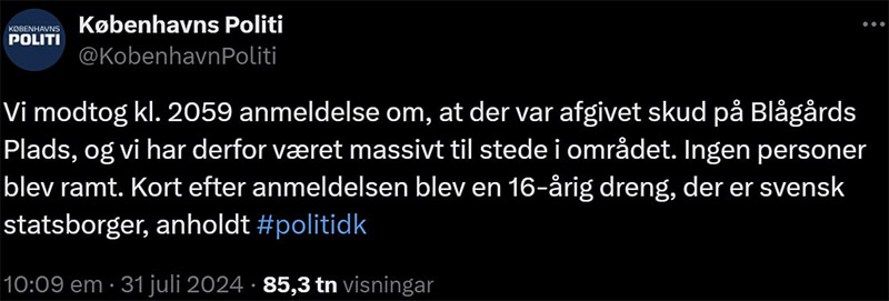 Köpenhamnspolisen informerar under kvällen löpande allmänheten via sociala medier. ”Fler lymlar från Lönneberga”, skojar en man som kommentar till ett av polisens inlägg.